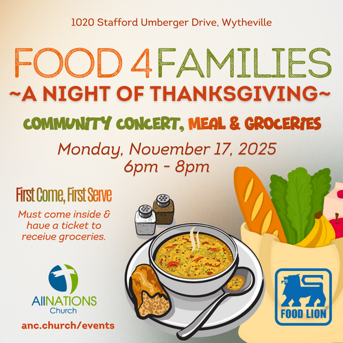 We are providing Thanksgiving meals to those in need. This event is open to all, so if you or anyone you know could benefit from this blessing, we'd love for you to join us.